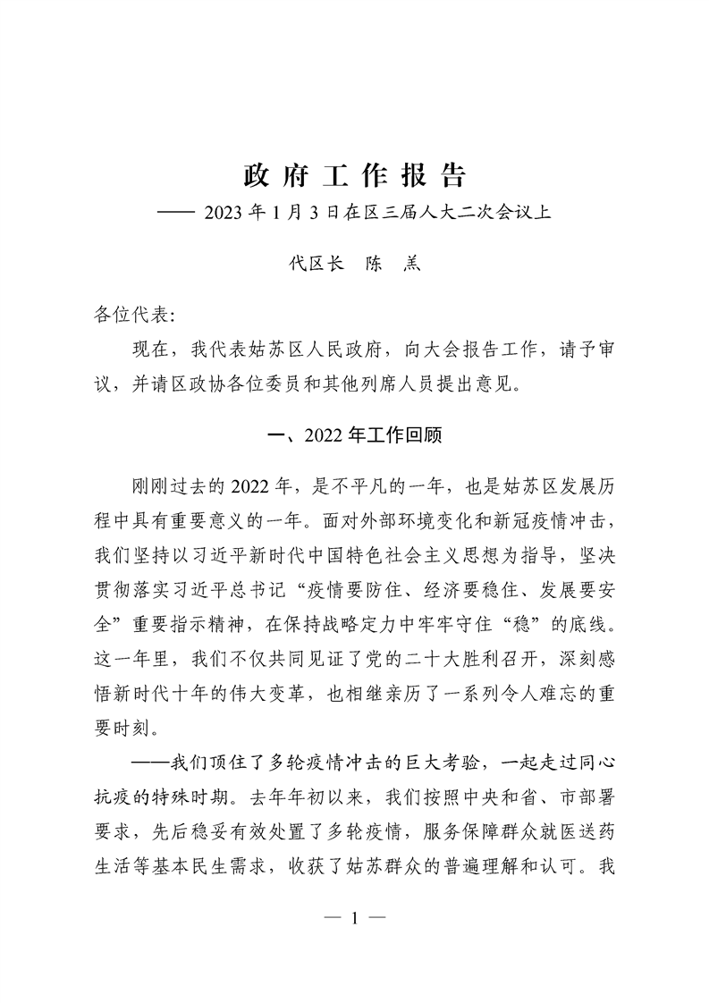政府工作報(bào)告 (2023年1月3日在區(qū)三屆人大二次會(huì)議上)