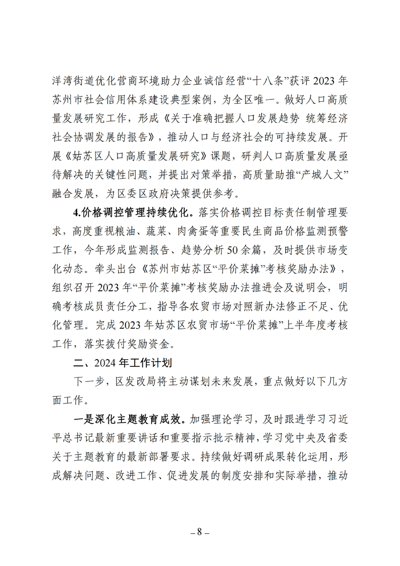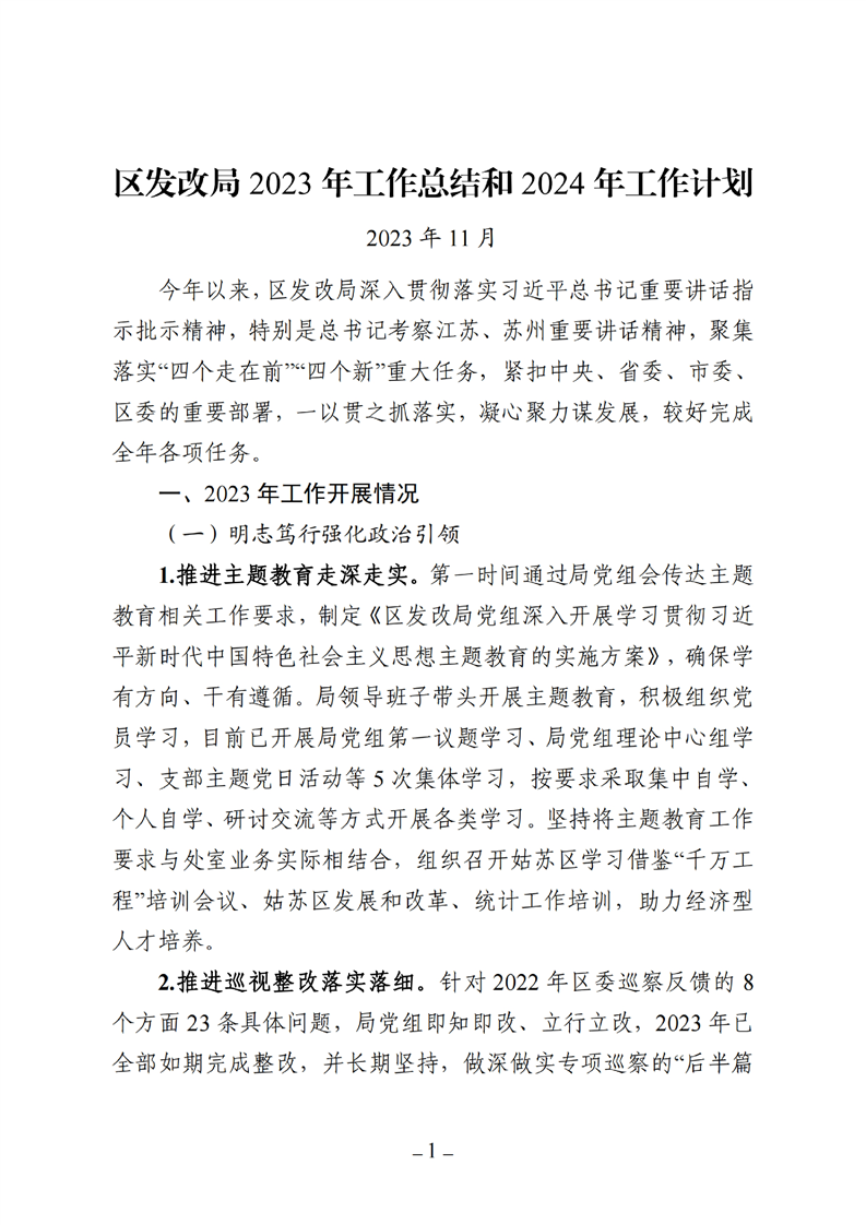 區發改局 2023 年工作總結和 2024 年工作計劃