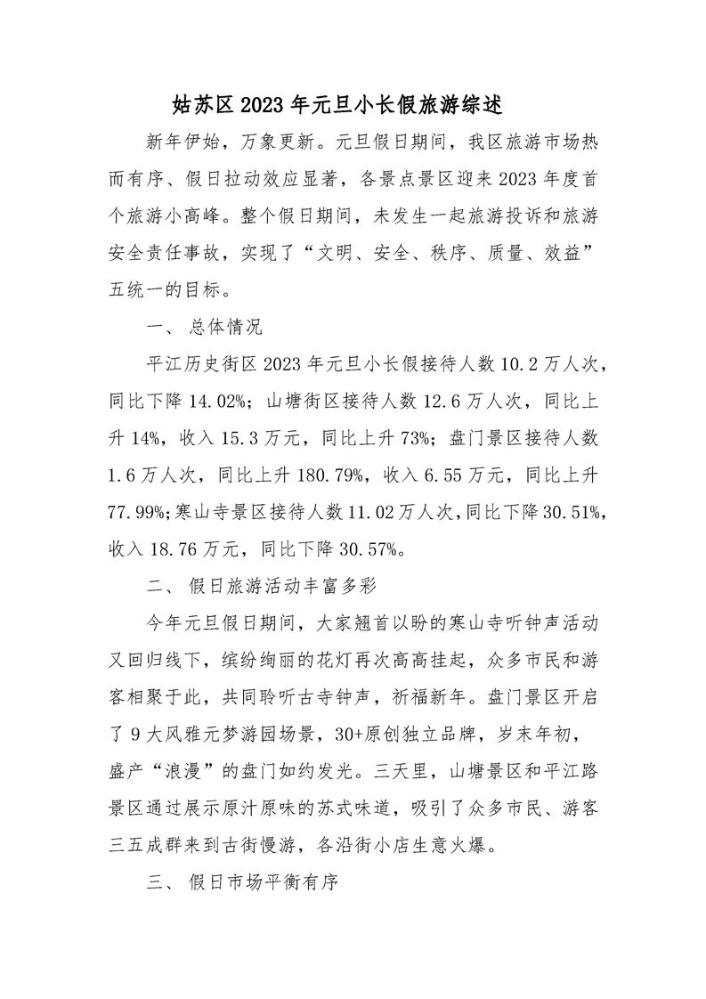 姑蘇區(qū)2023年元旦小長假旅游綜述