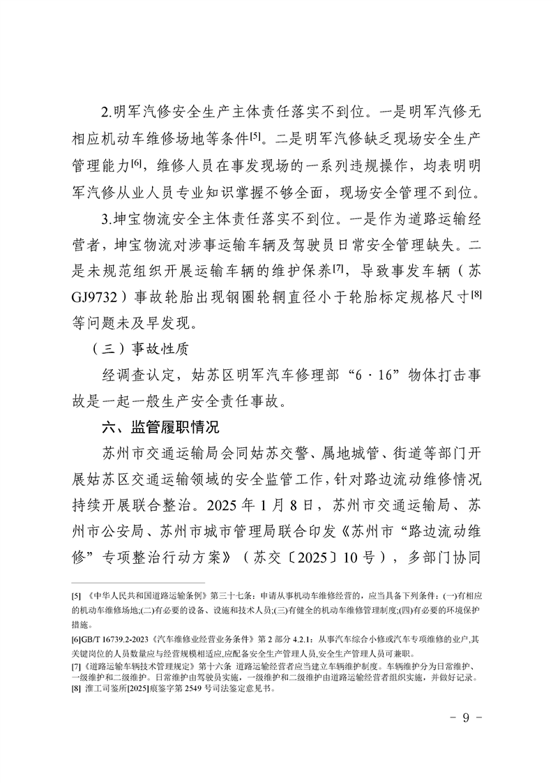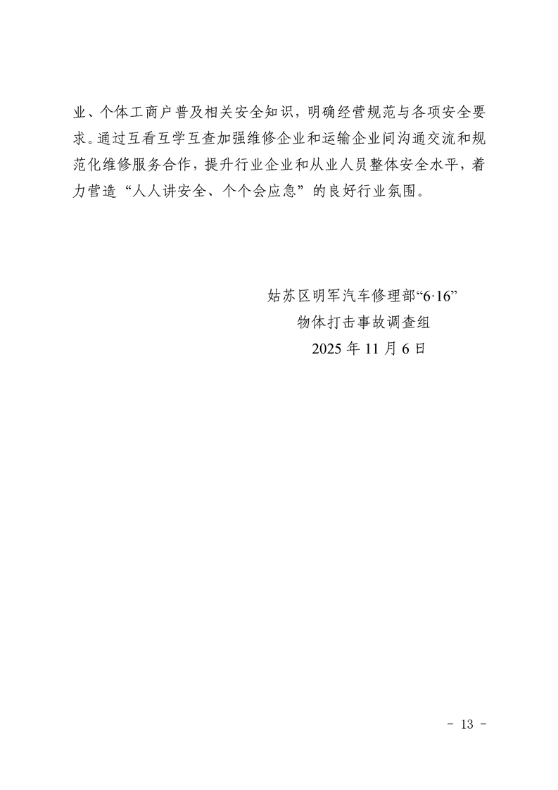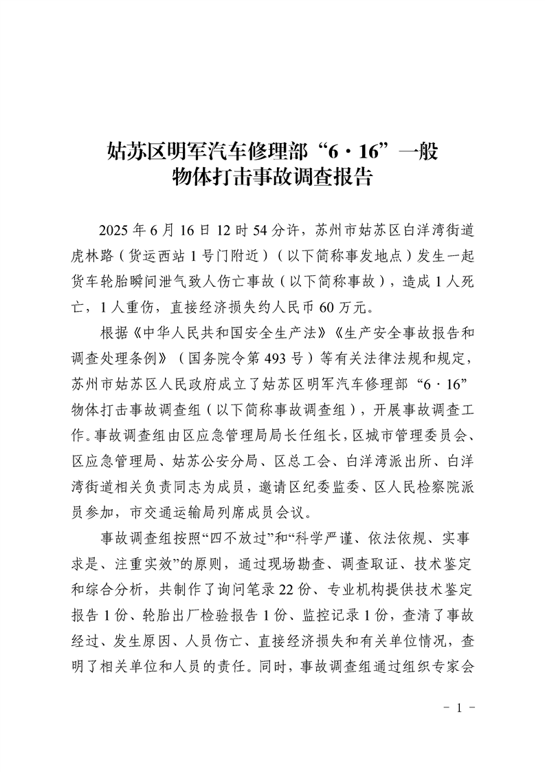 姑蘇區明軍汽車修理部“6·16”一般物體打擊事故調查報告