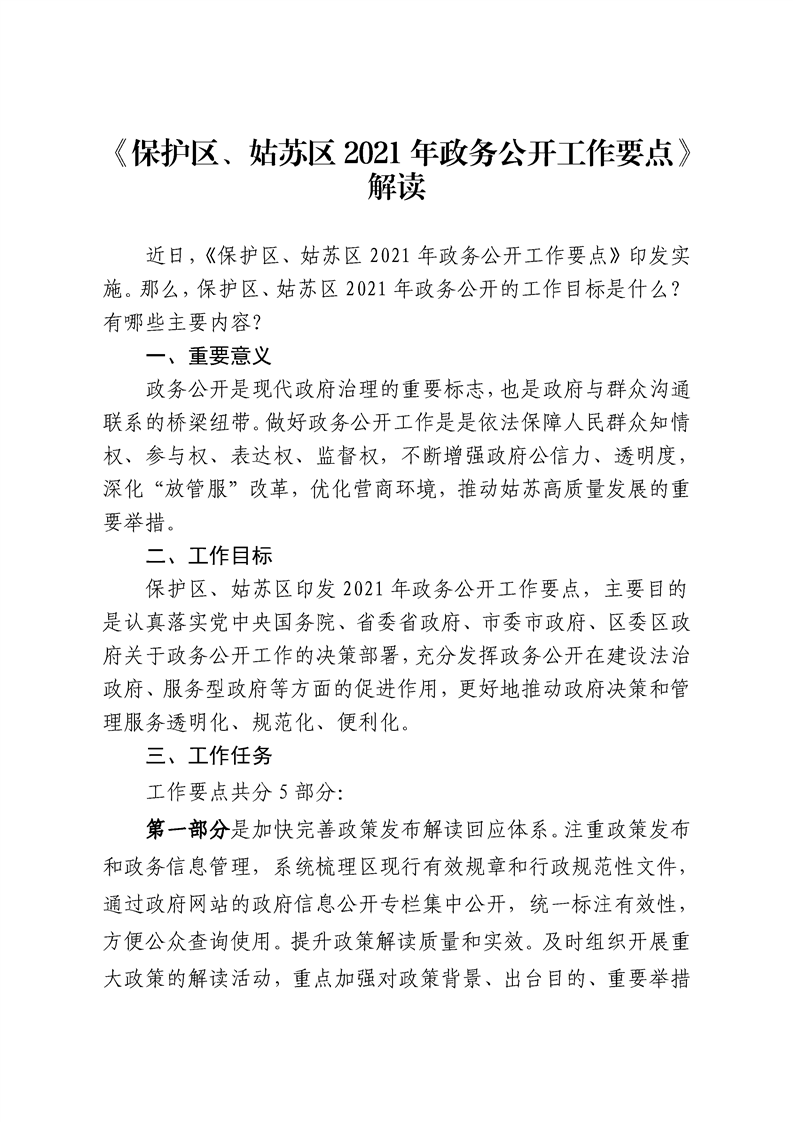《保護區、姑蘇區2021年政務公開工作要點》解讀