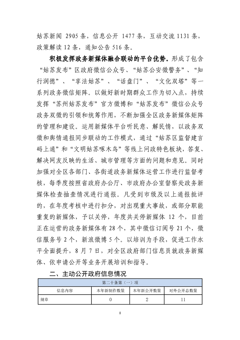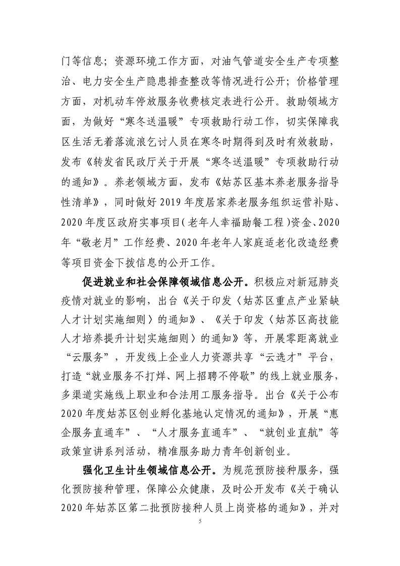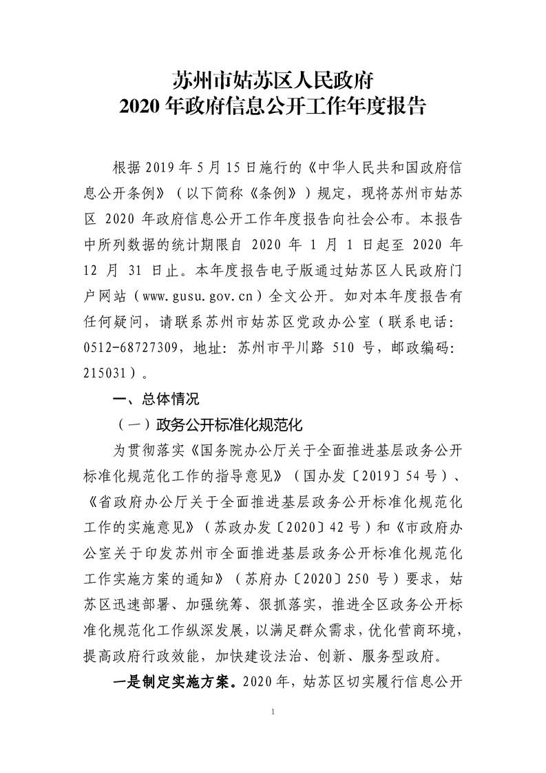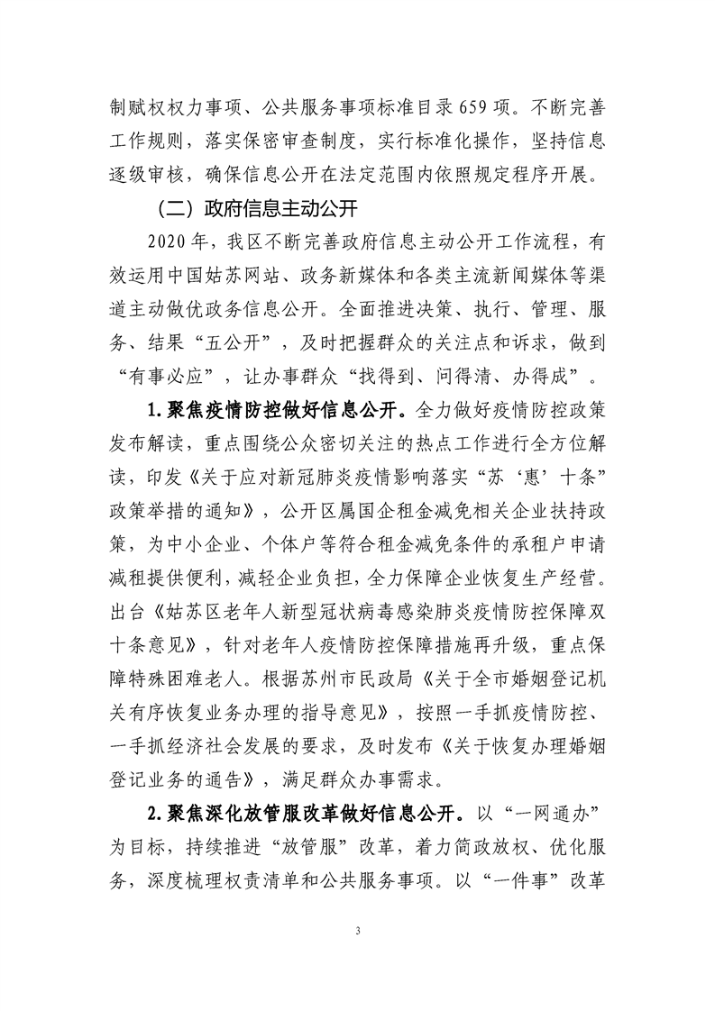 蘇州市姑蘇區人民政府2020年政府信息公開工作年度報告