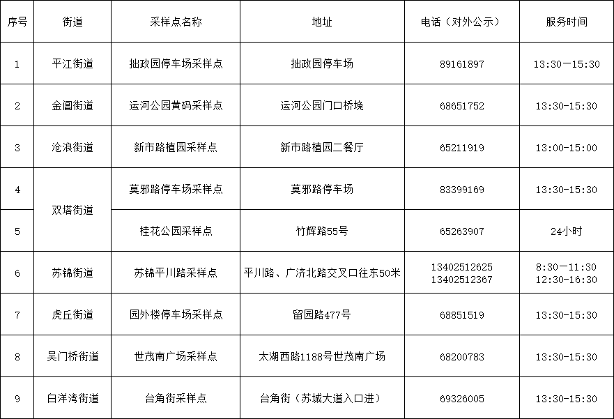 姑蘇區更新“黃碼”人員專用核酸采樣點名單