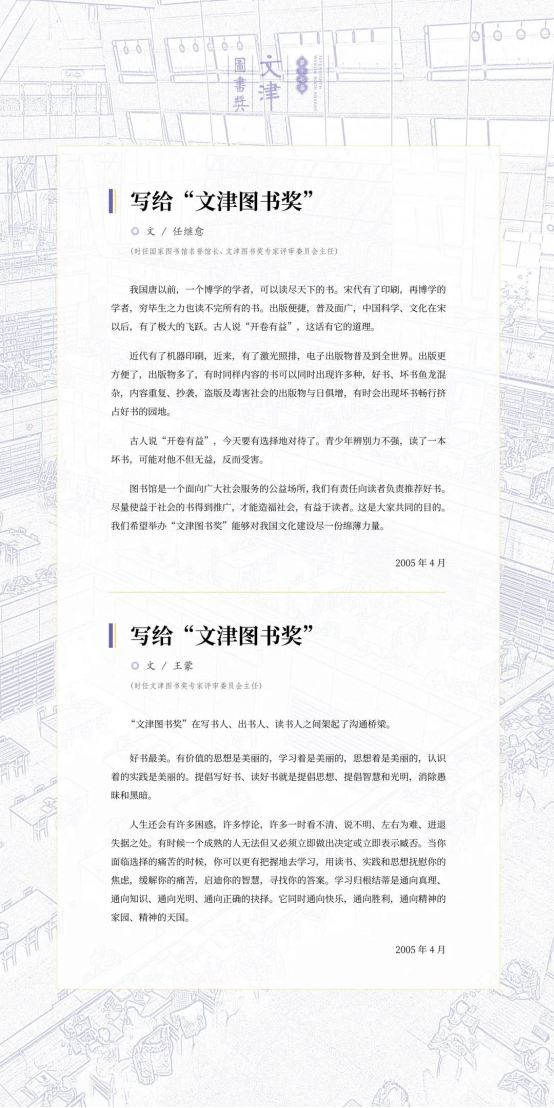 文津圖書獎評選每年舉辦一次,參評圖書側重于能夠傳播知識、陶冶情操,提高公眾思想道德素質與科學人文素養的普及性圖書。想了解文津圖書獎評選和推廣的更多內容可掃描以下二維碼: