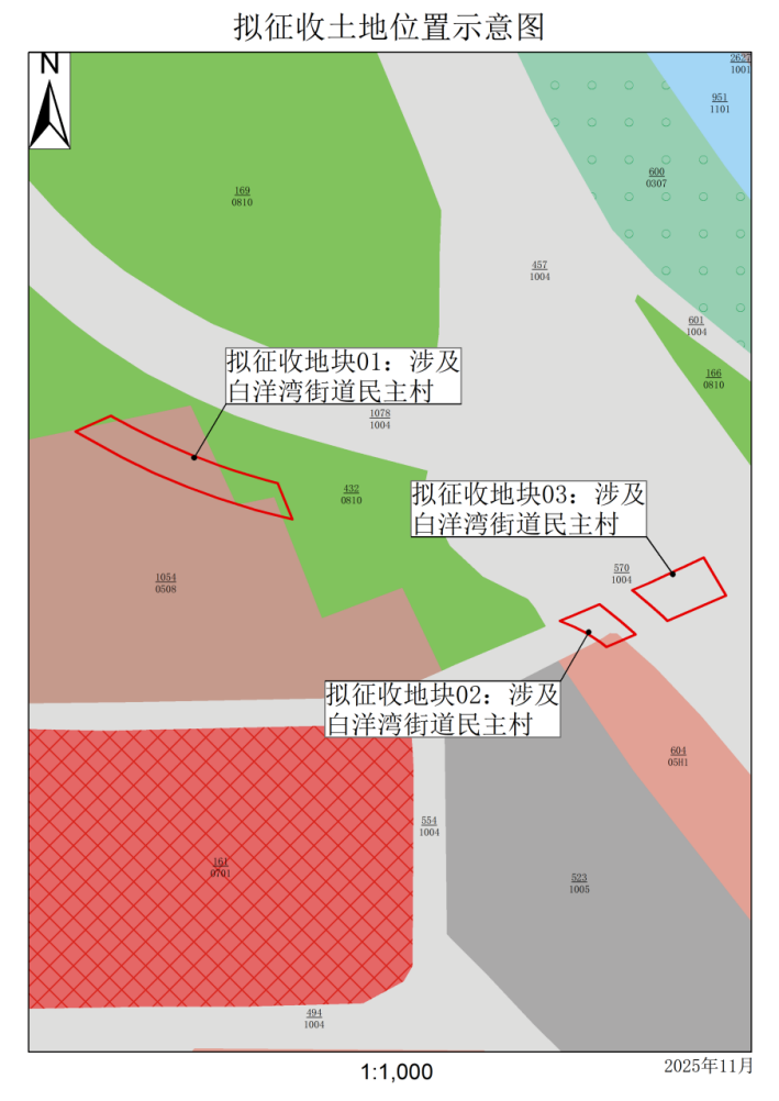 本次擬征收土地位于白洋灣街道民主村范圍內。擬征收土地位置詳見附圖。