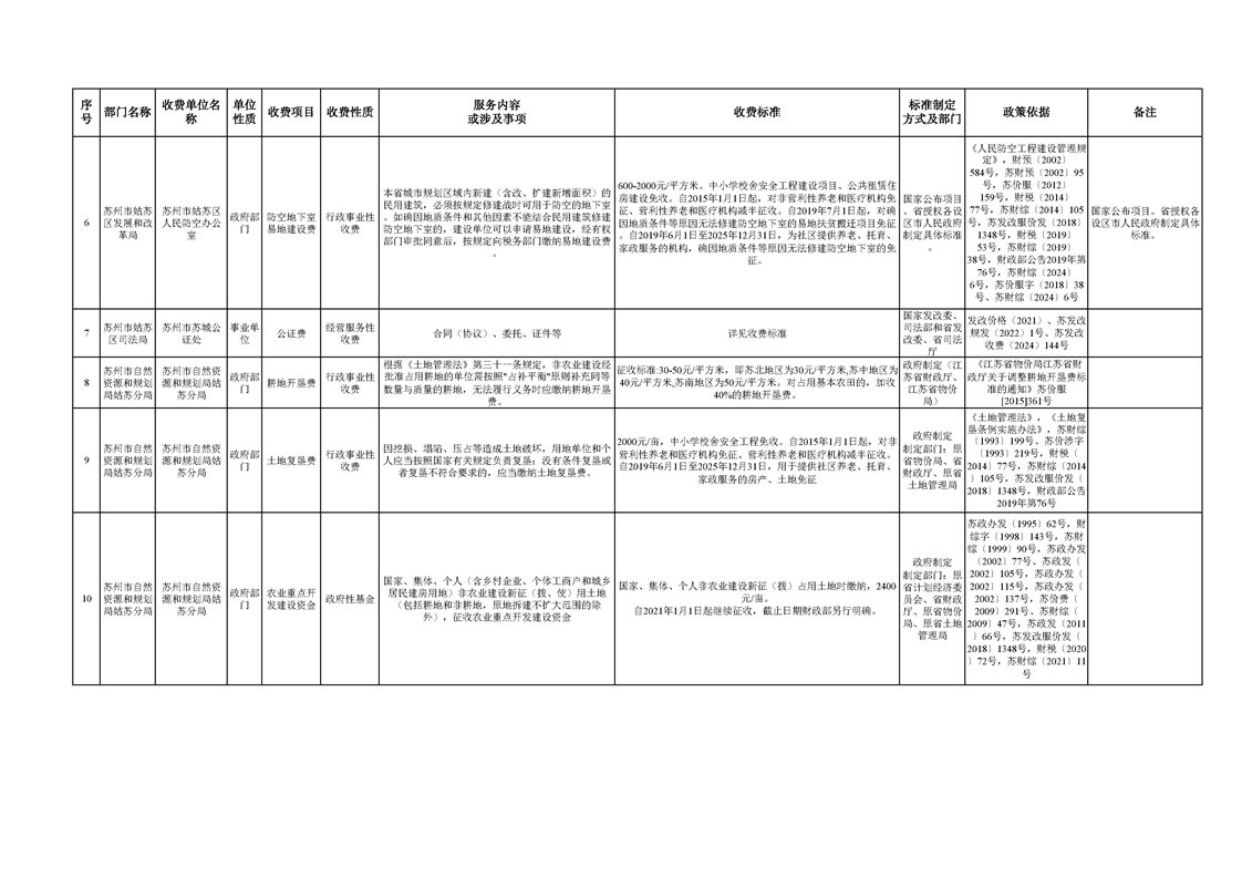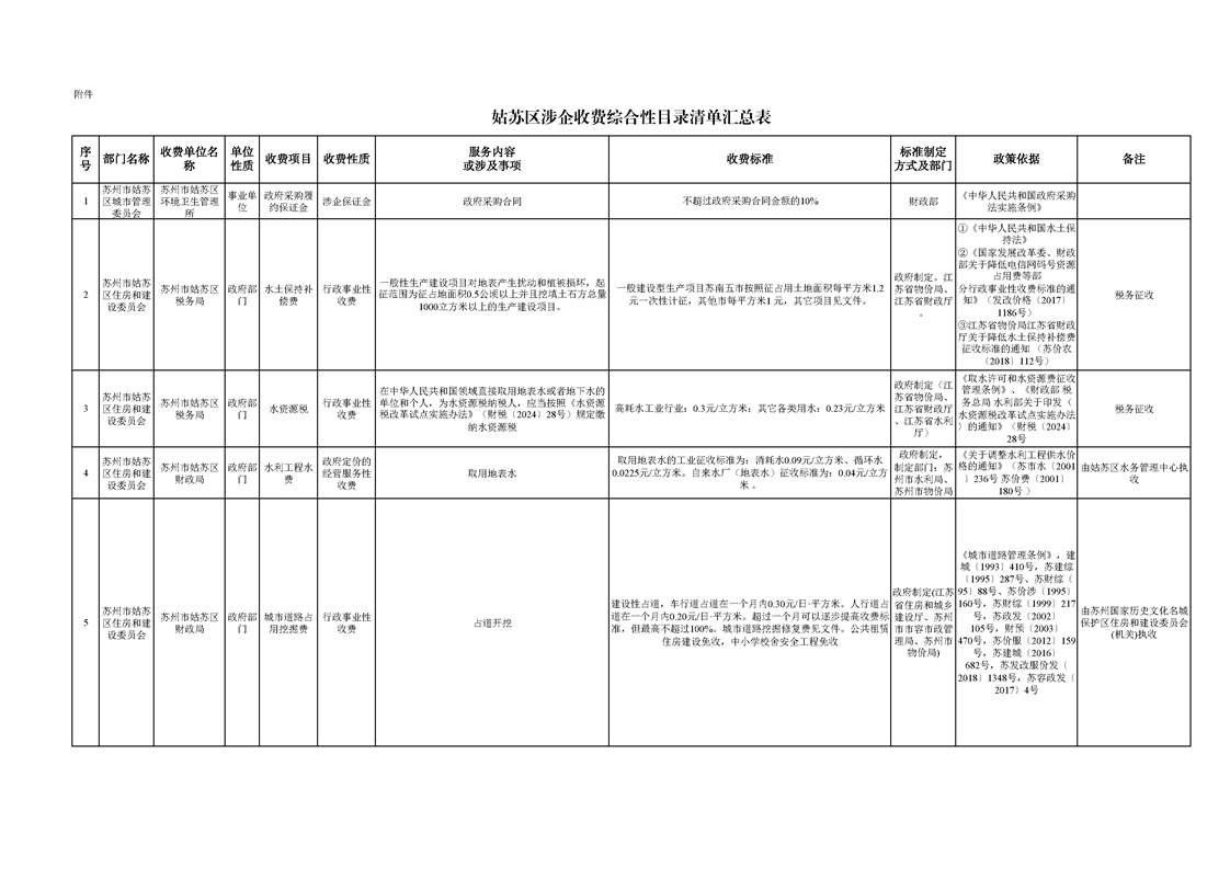 姑蘇區涉企收費綜合性目錄清單匯總表