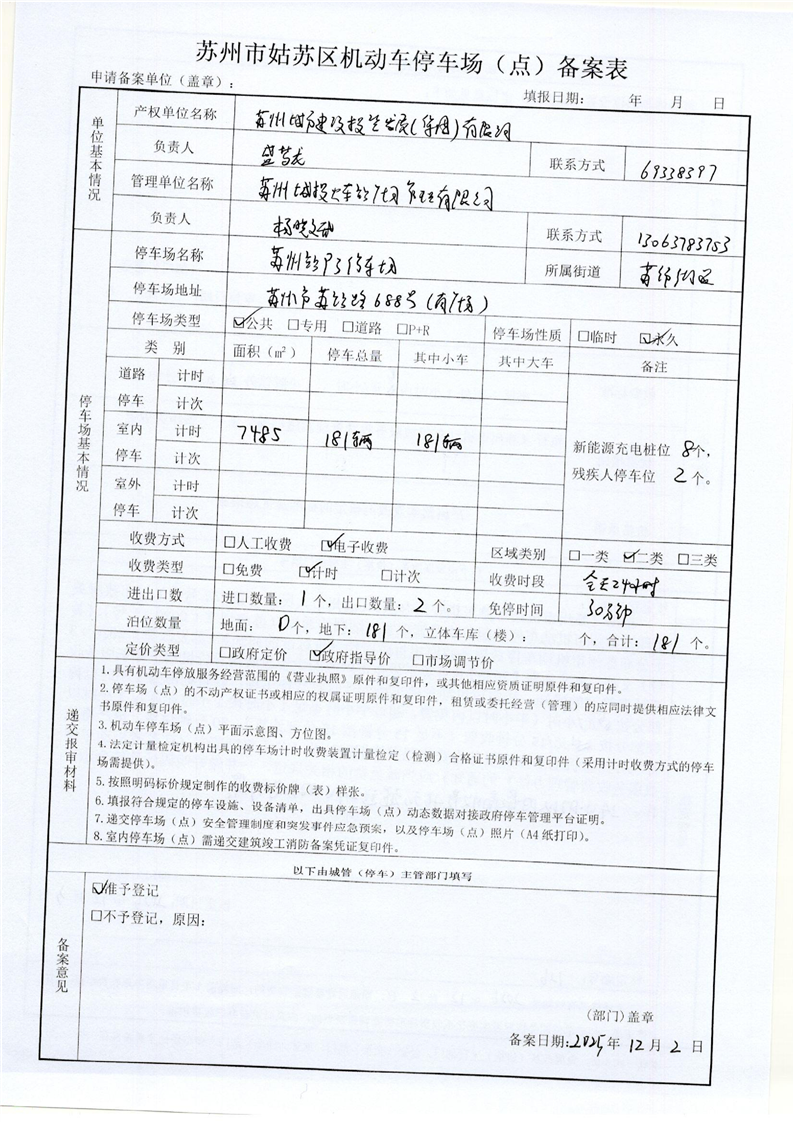 蘇州市姑蘇區機動車停車場(點)備案表(126)