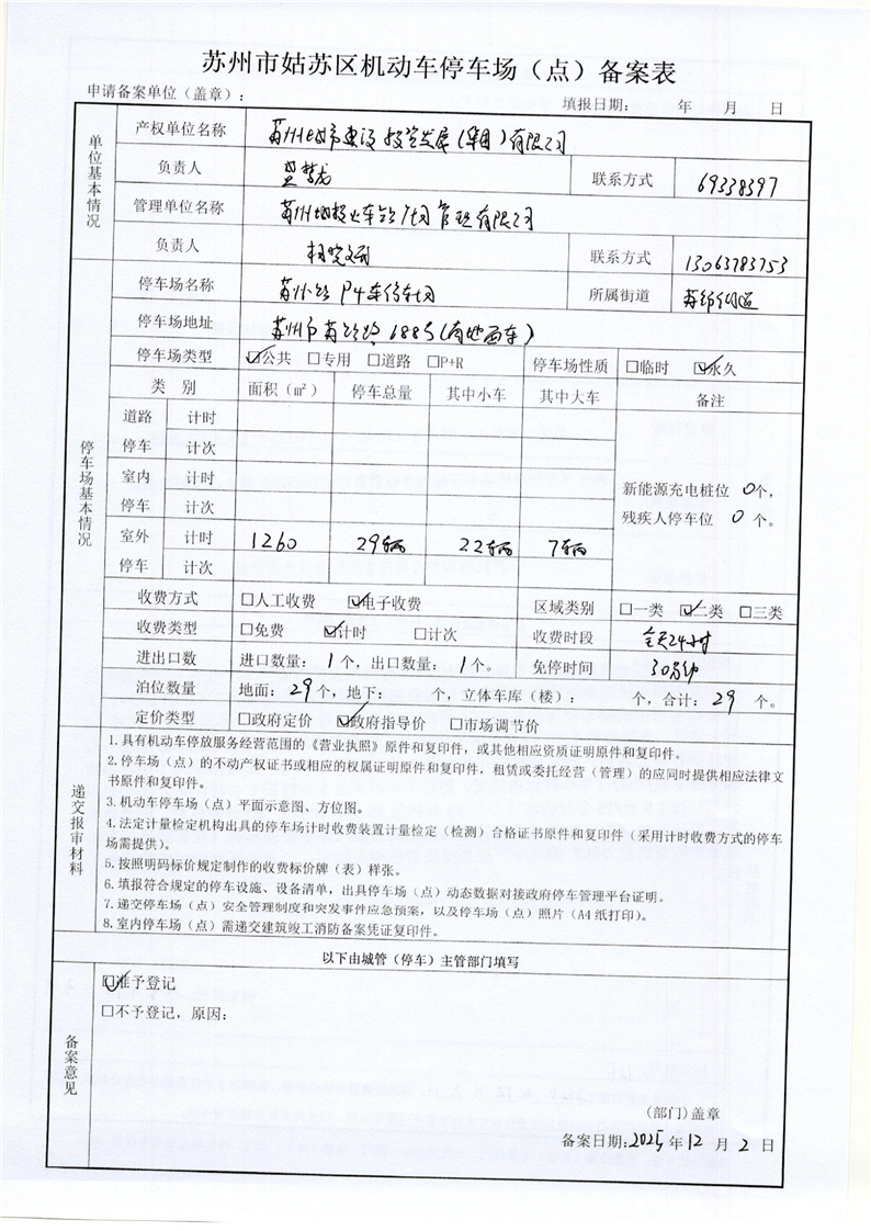 蘇州市姑蘇區機動車停車場(點)備案表(125)