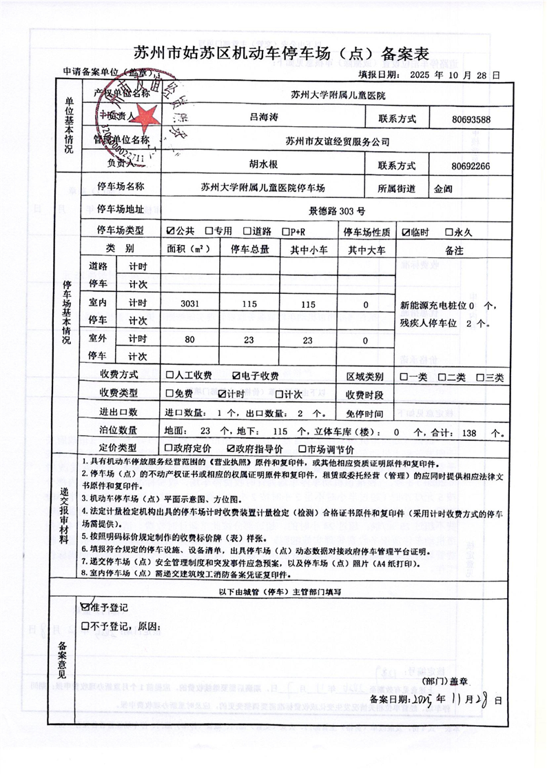 蘇州市姑蘇區機動車停車場(點)備案表(129)