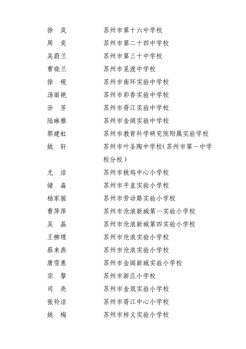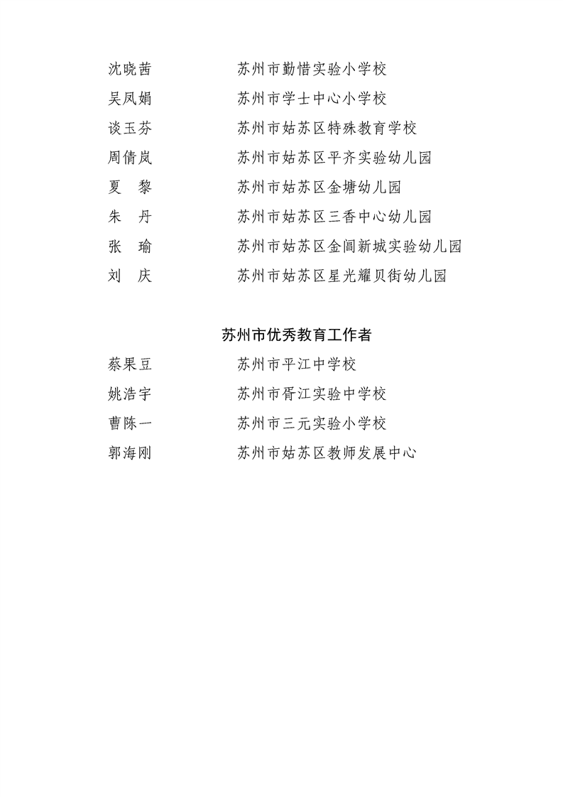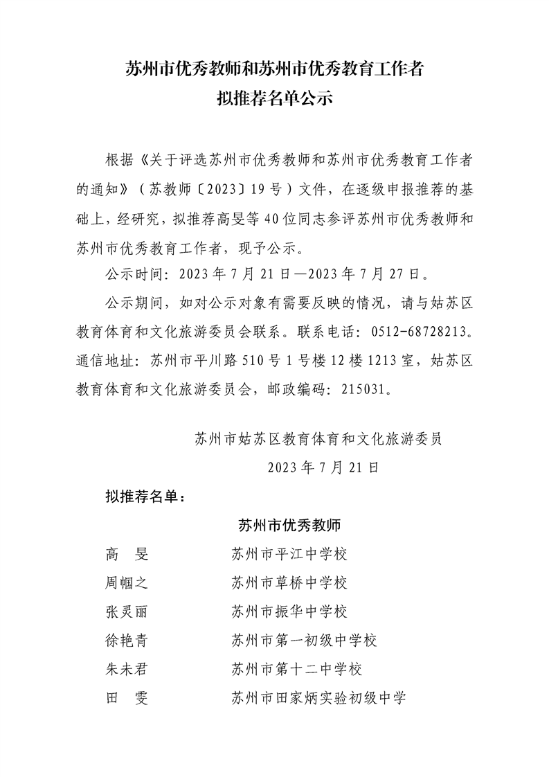 蘇州市優秀教師和蘇州市優秀教育工作者擬推薦名單公示
