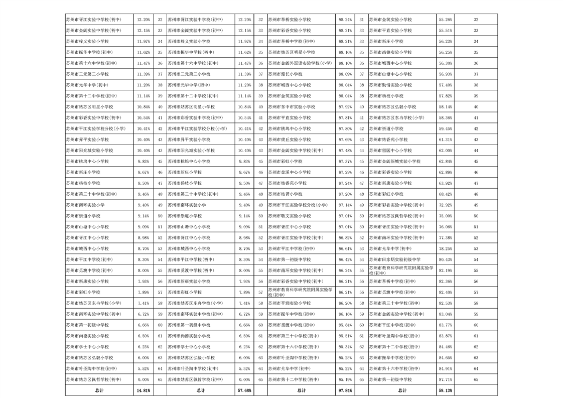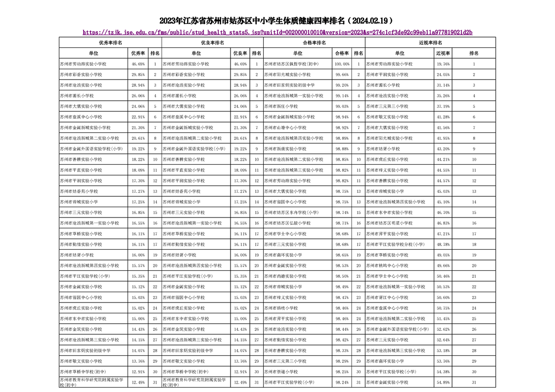 2023年度蘇州市姑蘇區中小學生體質健康四率排名表公示